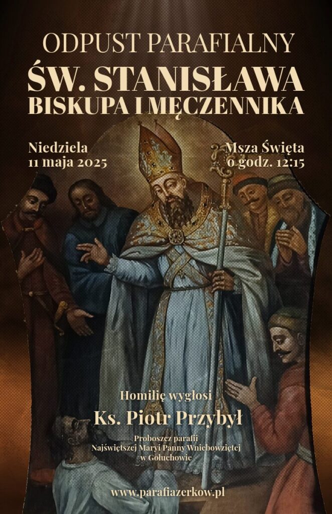 Z radością pragnę zaprosić Was na uroczystość odpustową ku czci naszego patrona, świętego Stanisława Biskupa i Męczennika. To wyjątkowe wydarzenie odbędzie się w niedzielę, 11 maja 2025 roku, o godzinie 12:15 w naszym kościele parafialnym. Uroczystej Mszy Świętej odpustowej przewodniczyć będzie i homilię wygłosi czcigodny ksiądz Piotr Przybył, proboszcz z Gołuchowa.